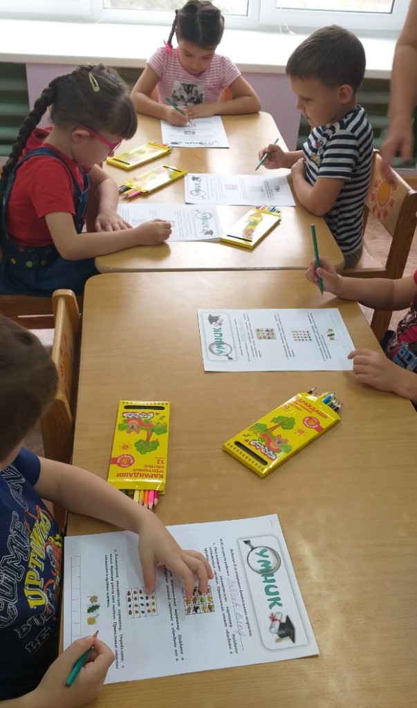 Дети с удовольствием отвечали на вопросы, предложенного теста, работали с таблицами, находили парные картинки и соединяли их линиями, подбирали одежду и обувь по сезону. По окончании работы выполненные заданий будут отсканированы и отосланы организаторам конкурса.