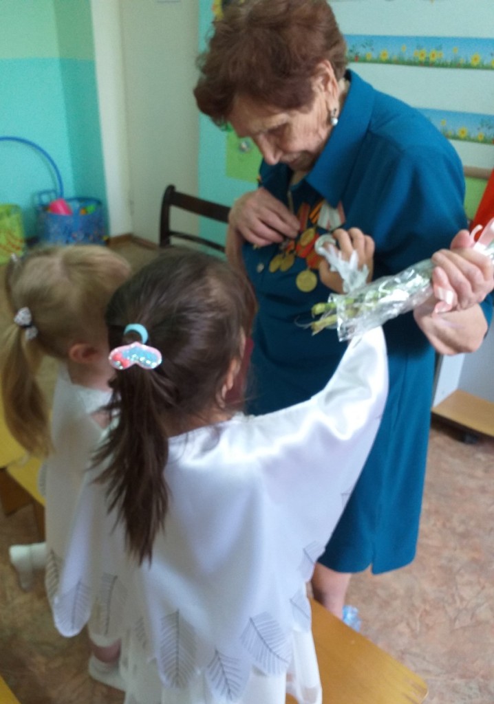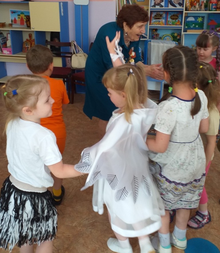 к нам в детский сад, в группу «Глаголики», в гости пришли ветераны (дети войны) Кузнецова Клавдия Александровна и Кичатова Татьяна Алексеевна. Они рассказали детям: как жилось им в годы войны, как помогали взрослым и как победили в страшной войне.