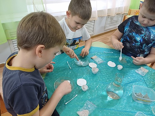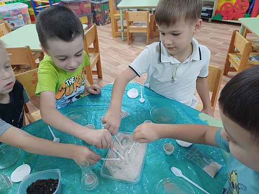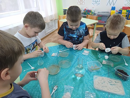 Потребность ребёнка в новых впечатлениях лежит в основе возникновения и развития поисково — исследовательской деятельности. Посещая «Занимательную лабораторию » Галилео Галилей», воспитанники группы «Говорушки» познакомились с песком и глиной. Вместе с воспитателем Павловой Н.В. рассмотрели особенности и свойства песка и глины, разобрали их сходства и отличия.