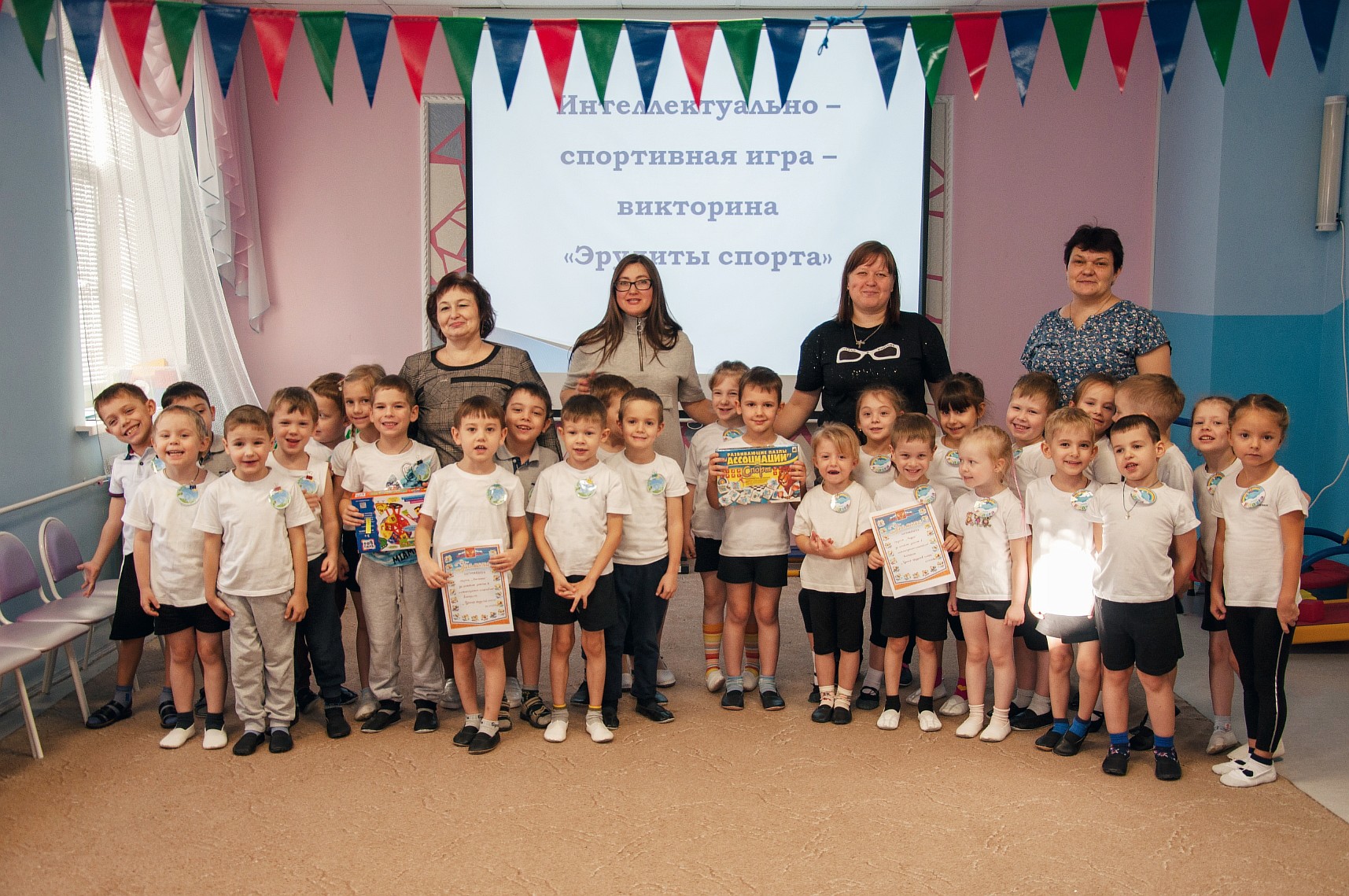 в старших группах «Капельки», «Радуга» и подготовительных группах «Ветерок», «Полянка» второго корпуса детского сада состоялся самый веселый из всех спортивных и самый спортивный из всех веселых игр «Турнир эрудитов спорта»!