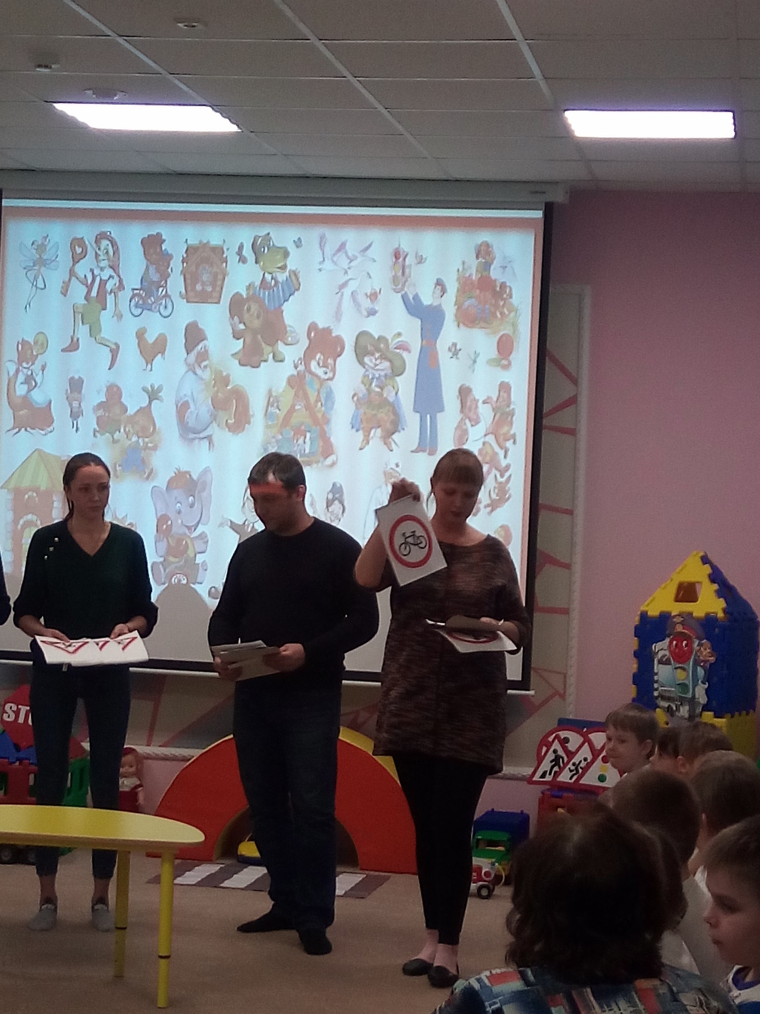 Активными участниками развлечения стали родители: они играли в весёлые игры, рассказывали о дорожных знаках, танцевали с детьми, изображая различные виды транспорта.
