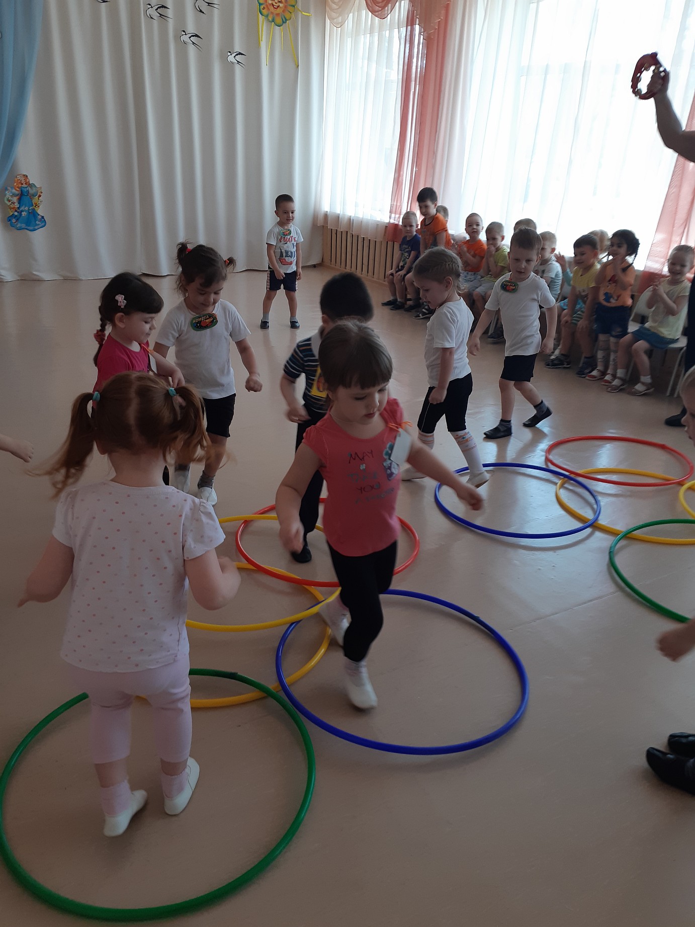 Собравшись в спортивном зале вместе со своими командирами полёта – любимыми воспитателями Лутцевой С.Ф. и Беловой Р.Л., дети весело выполняли спортивные этапы эстафеты-путешествия.