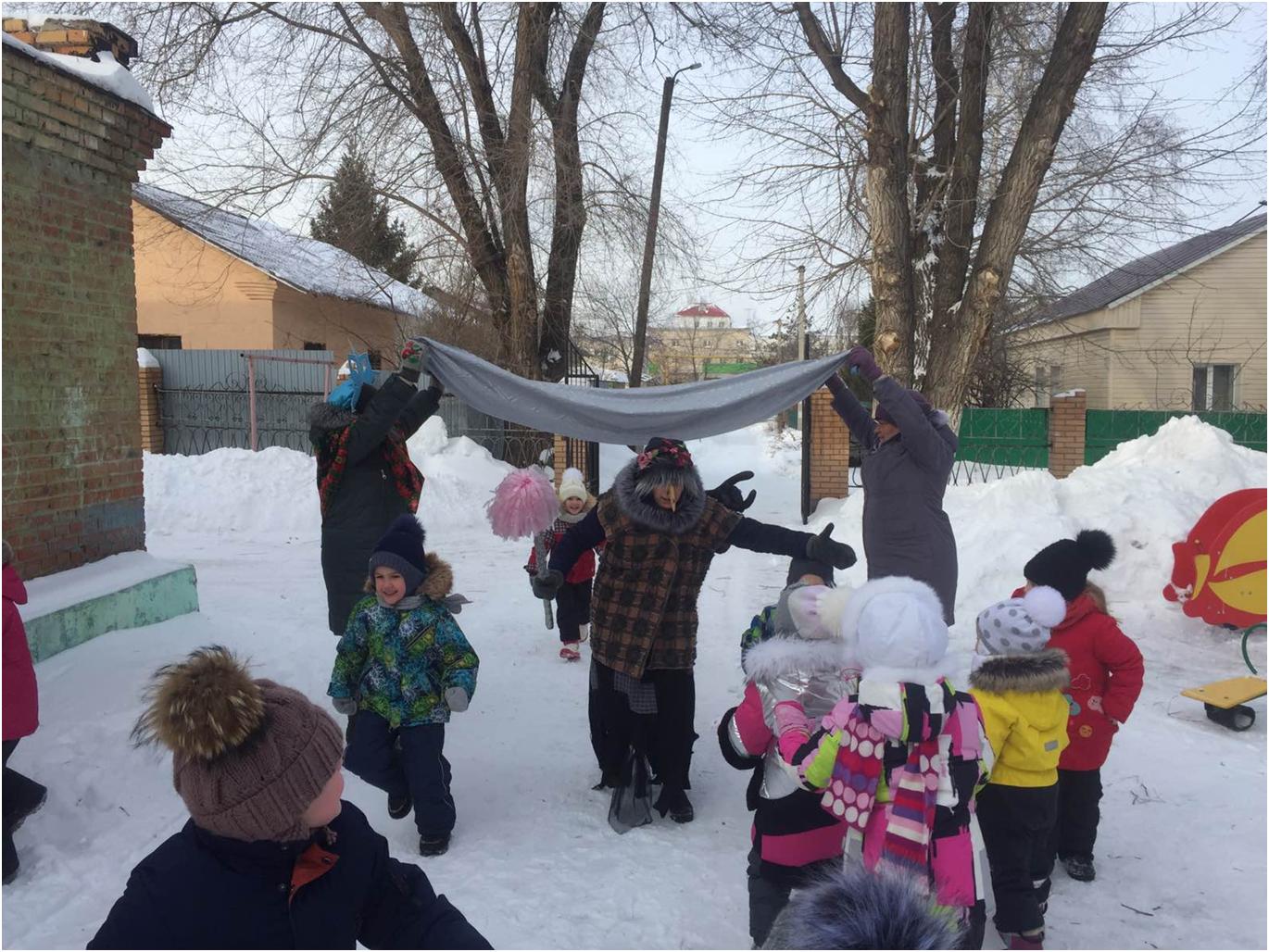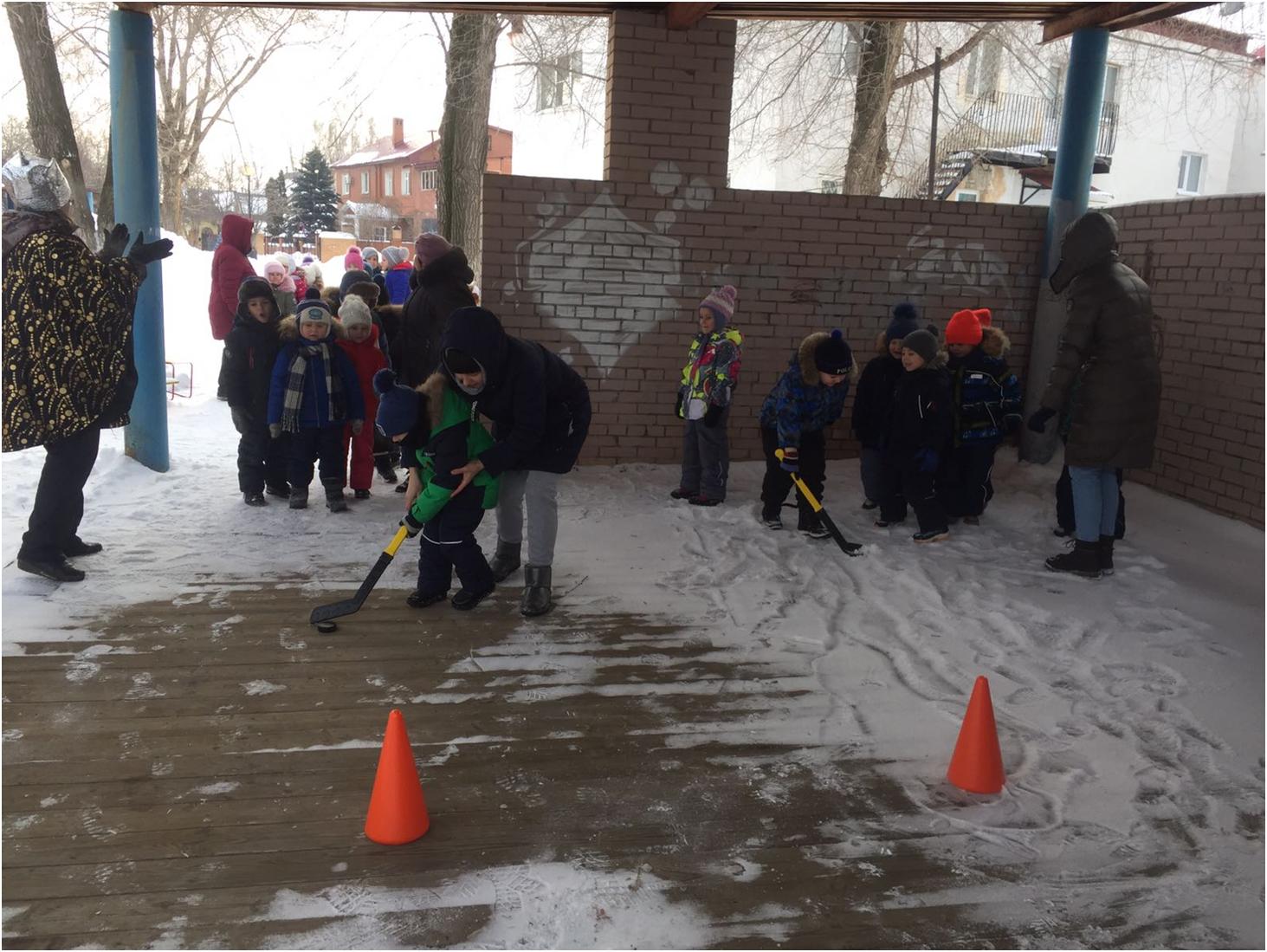 Прибыв на станцию «Спортивная» Илья Муромец и Алеша Попович тренировались с детьми играть в хоккей. На следующей станции «Снежная», дети с Соловьём Разбойником старались метко попасть снежком в цель, играя в «Снайперов». На станции «Вьюжной», Марьюшка поиграла с детьми в игру «Снежная карусель». Баба Яга на станции «Ловкая» упражняла детей в прыжках в высоту. Праздник принёс в жизнь детей атмосферу радости и заряд бодрости. Наш зимний, спортивный праздник объединил всех.
