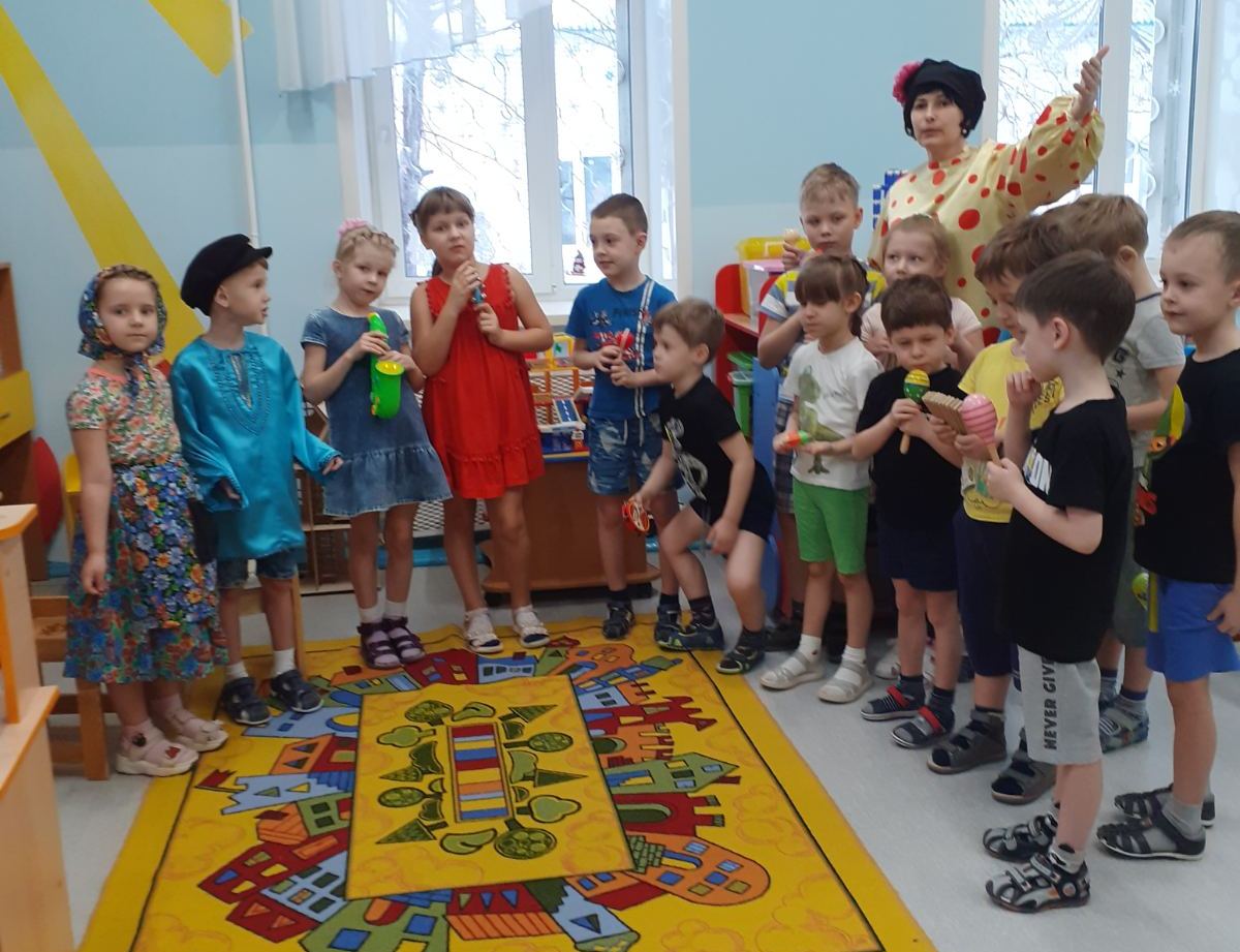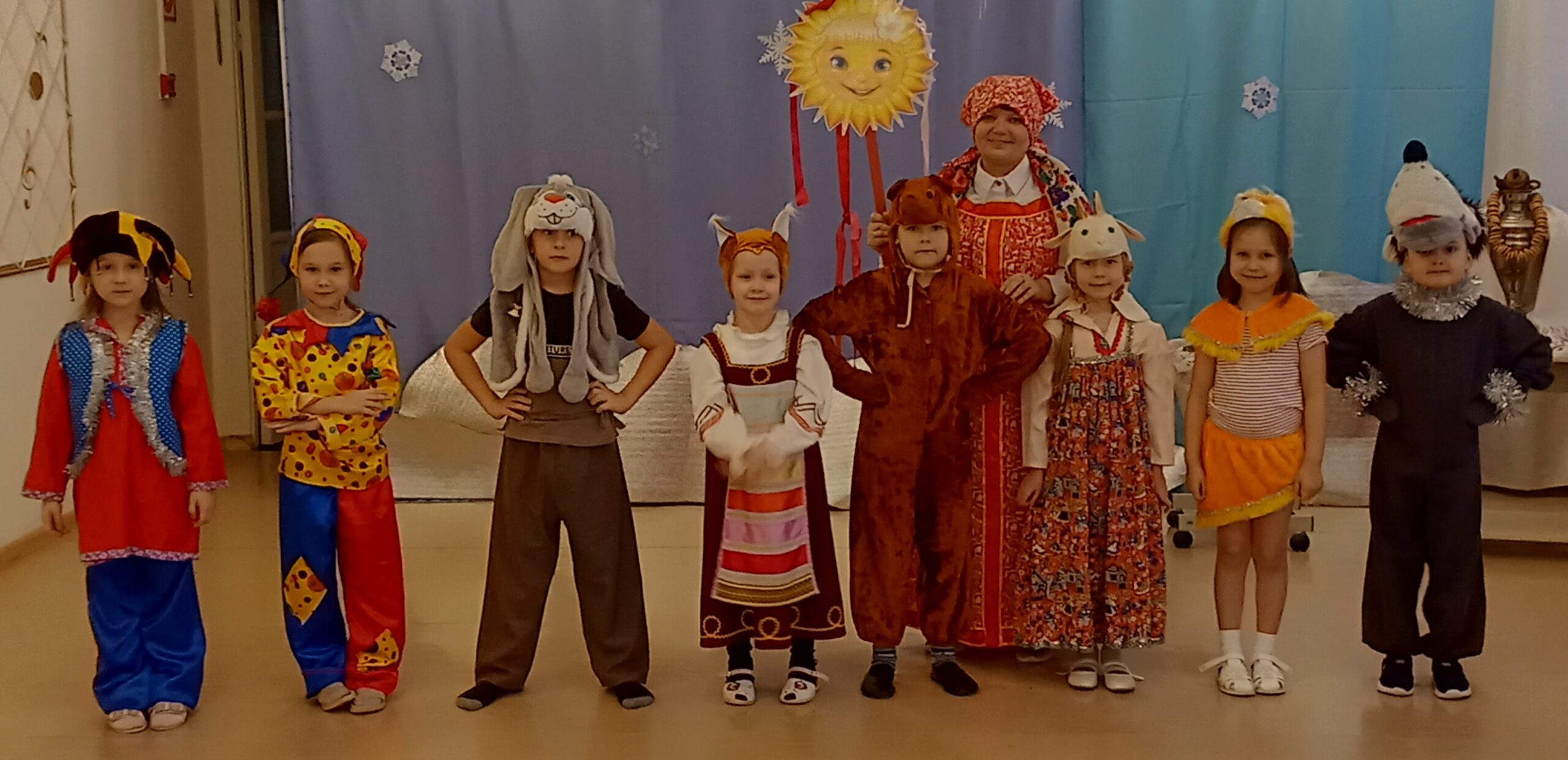 Дети подготовительной группы «Дюймовочка» были ряжеными колядовщиками, которые встречали детей каждой группы праздничной колядкой: